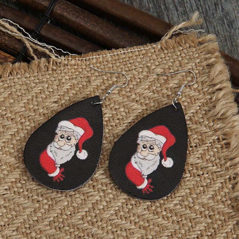 European & American Christmas Leather Earrings: Black Santa Claus Design - Simple & Stylish for Women