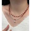 Многослойное колье из стерлингового серебра 925 пробы с красным агатом и имитацией жемчуга для женщин - Идеально для Рождества и Нового года