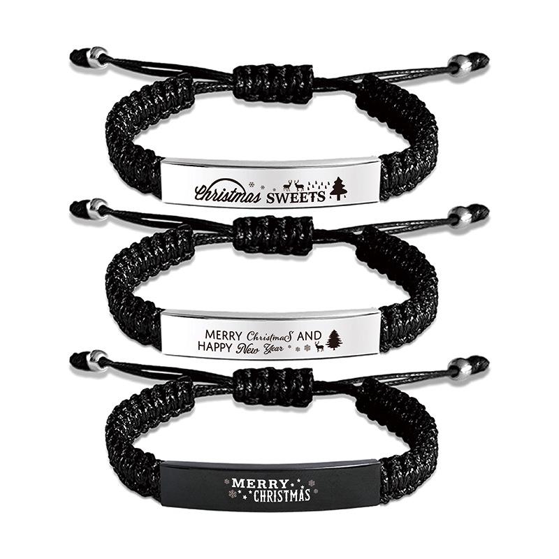 Рождественский плетеный браслет ручной работы с гравированной изогнутой пластиной из нержавеющей стали