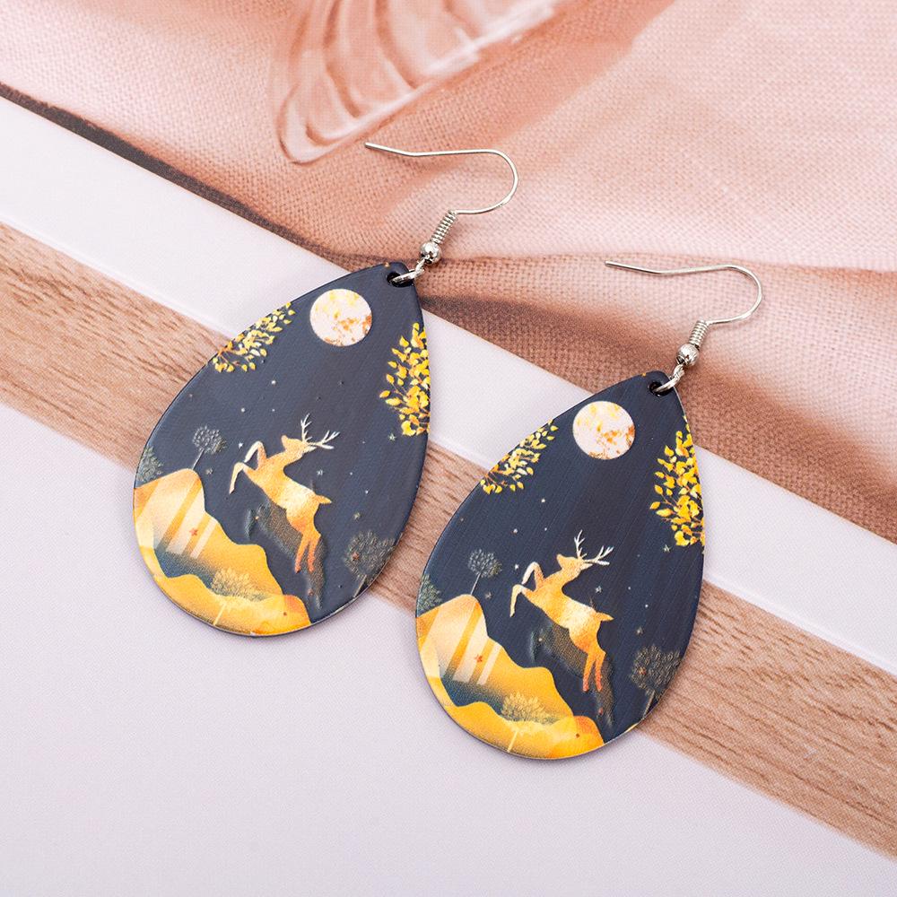 Золотые акриловые серьги-подвески в форме капли с узором оленей и листьев для женщин