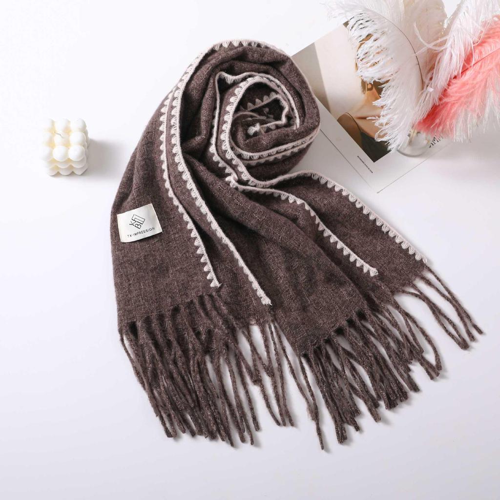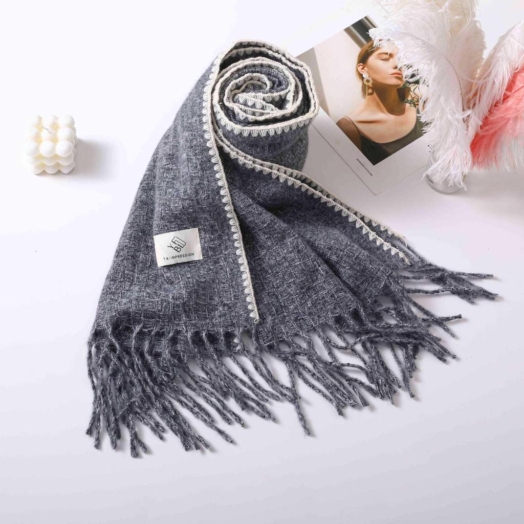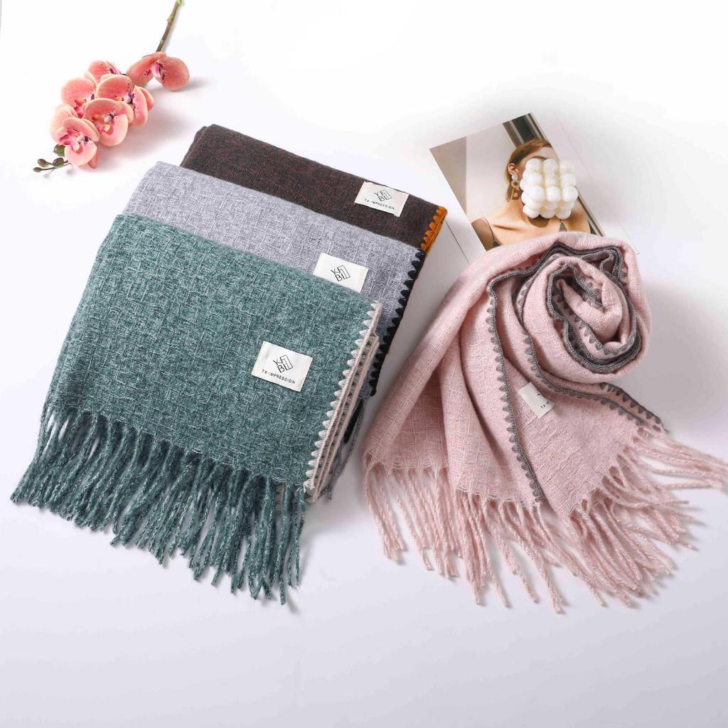 Женский шарф-шаль с кисточками в корейском стиле 2024 года - Толстый, теплый, двусторонний, идеально подходит для студентов и на Рождество