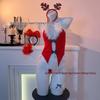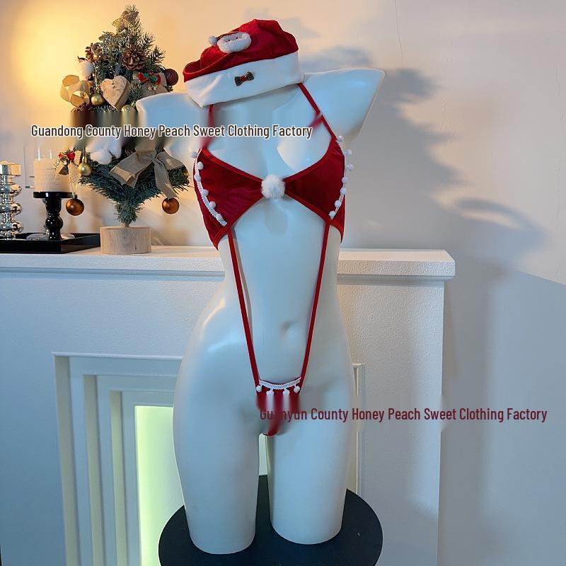 Red Pom-Pom Tie-Up Christmas Lingerie Halter Bodysuit
