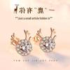Antler Stud Earrings: S925 Sterling Silver, Simple Diamond, Little Fawn Design, Women's Korean Christmas Jewelry