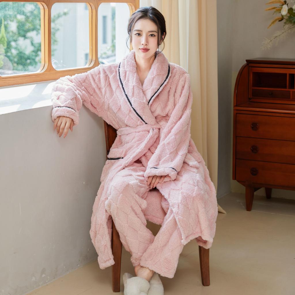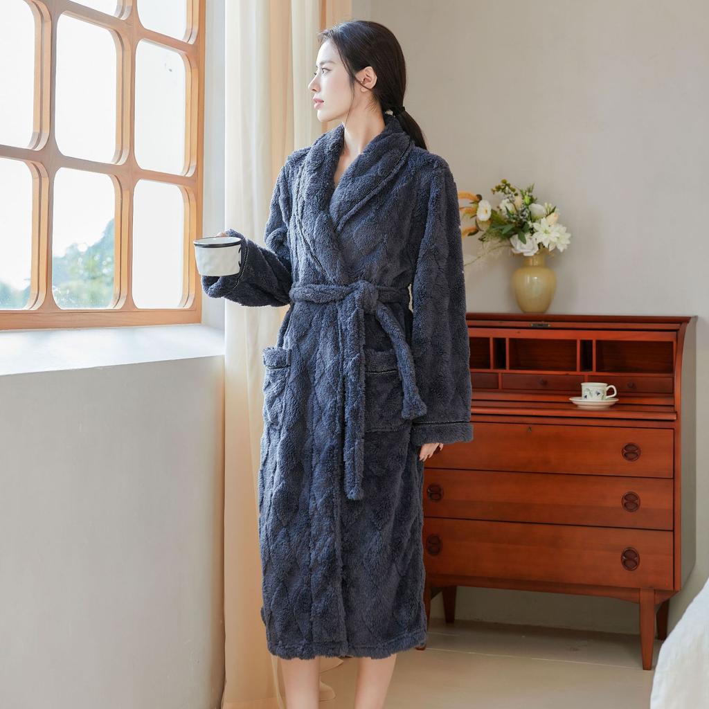 Ночная рубашка женская пижама мужская домашняя одежда осень-зима длинная коралловая бархатная плюшевая толстая парная банная рубашка фланель теплая одежда для сна