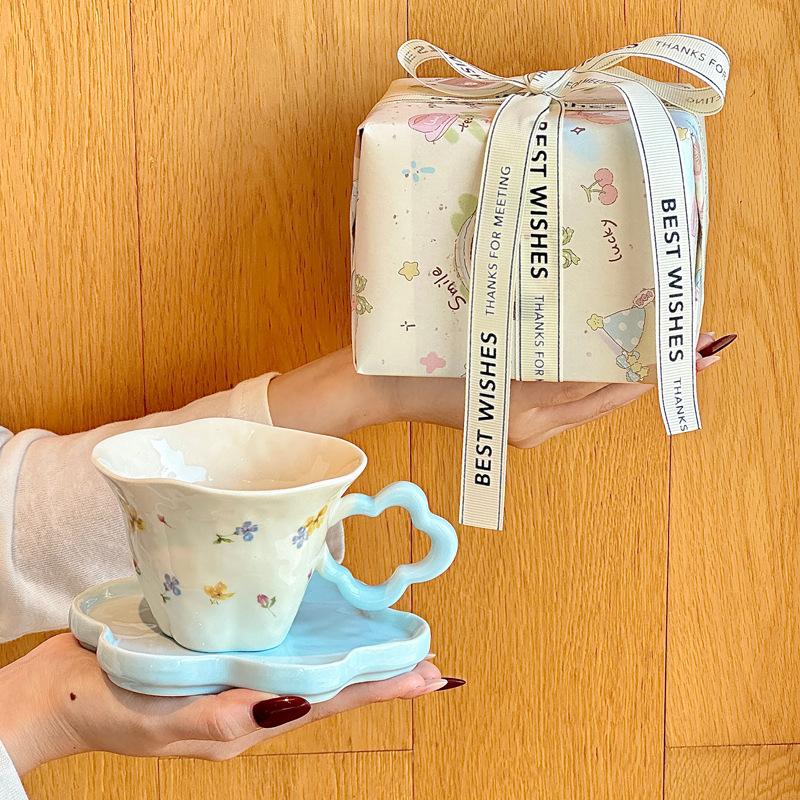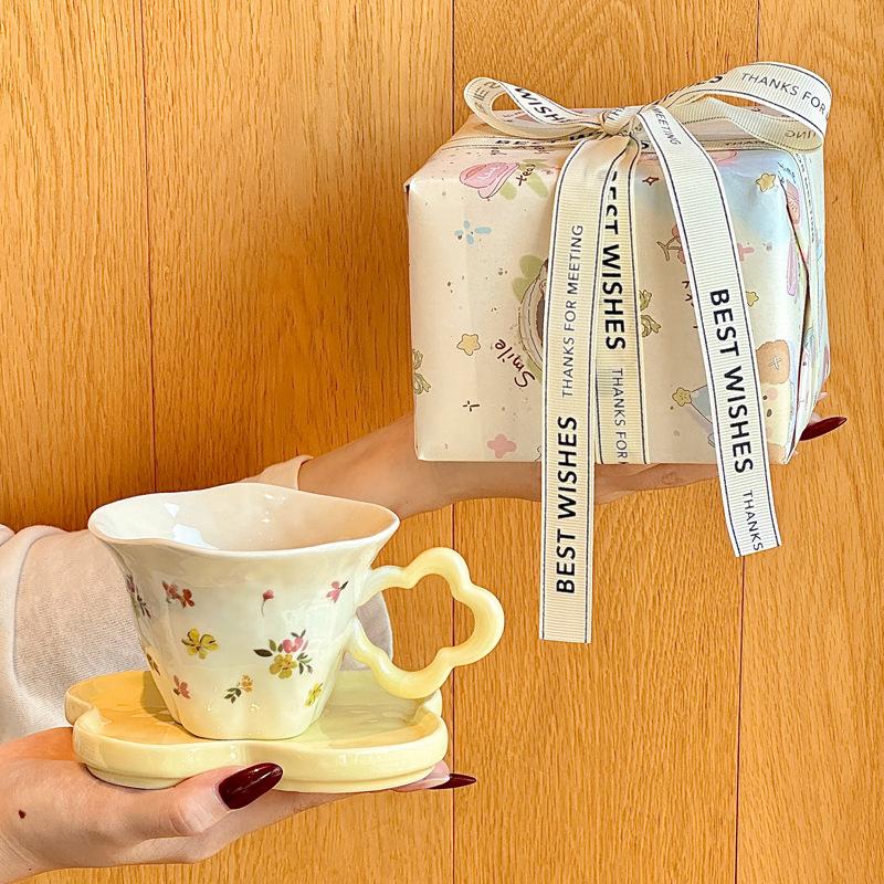 Французская кофейная чашка с мелким цветочным узором высокой ценности, керамическая чашка и блюдце, практичная подарочная коробка для подруг