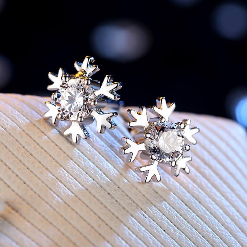 Серьги-пусеты из серебра 925 пробы с корейскими снежинками и цирконами для женщин - Элегантный, простой дизайн, идеальный рождественский подарок.