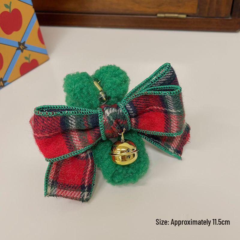 Плюшевая заколка-бант в клетку – Рождественские колокольчики Большая заколка-краб для женщин