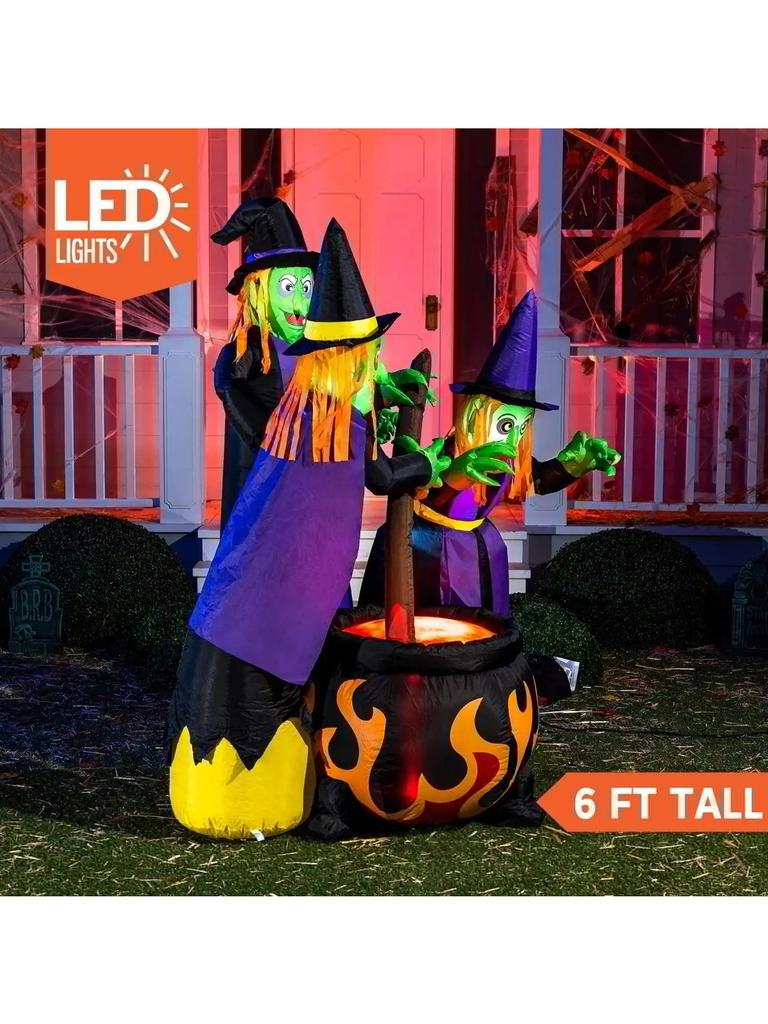 Joyfy 6 футов Ведьмин котел Хэллоуин Надувной Уличный Большой Декор с Подсветкой Пламени для Украшения на Хэллоуин