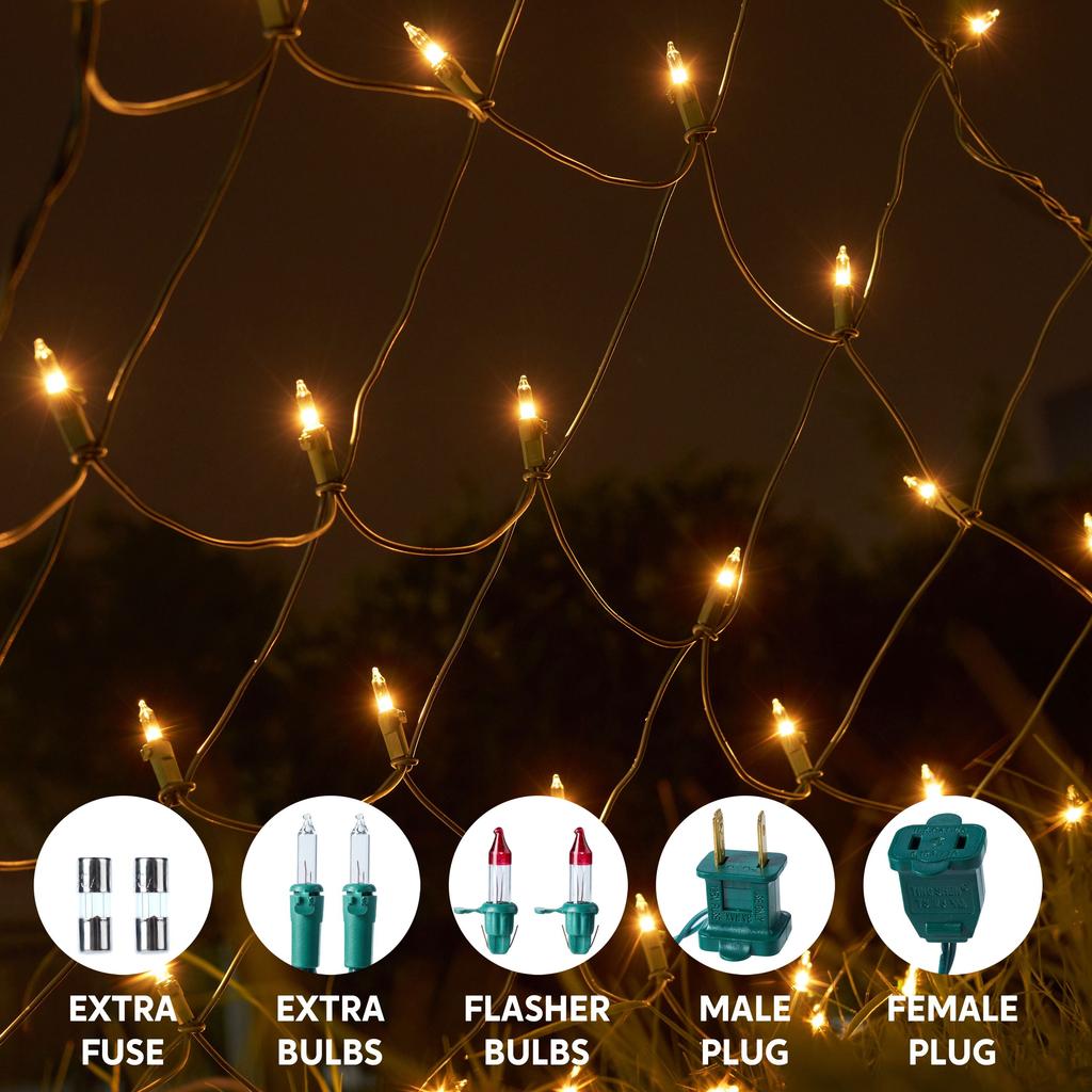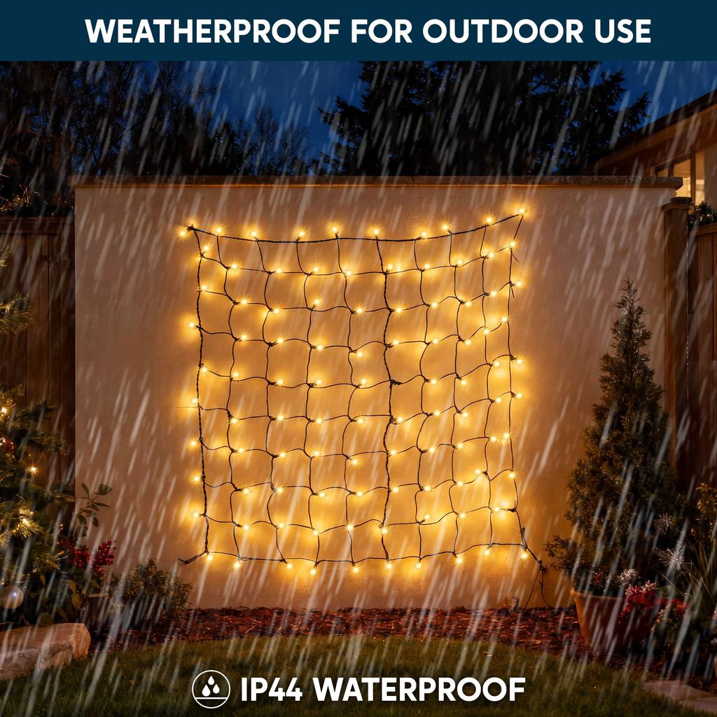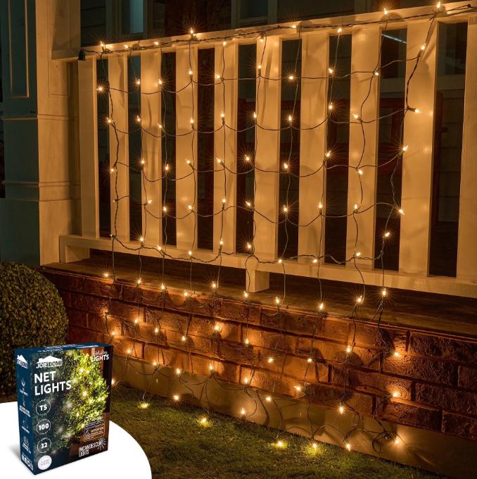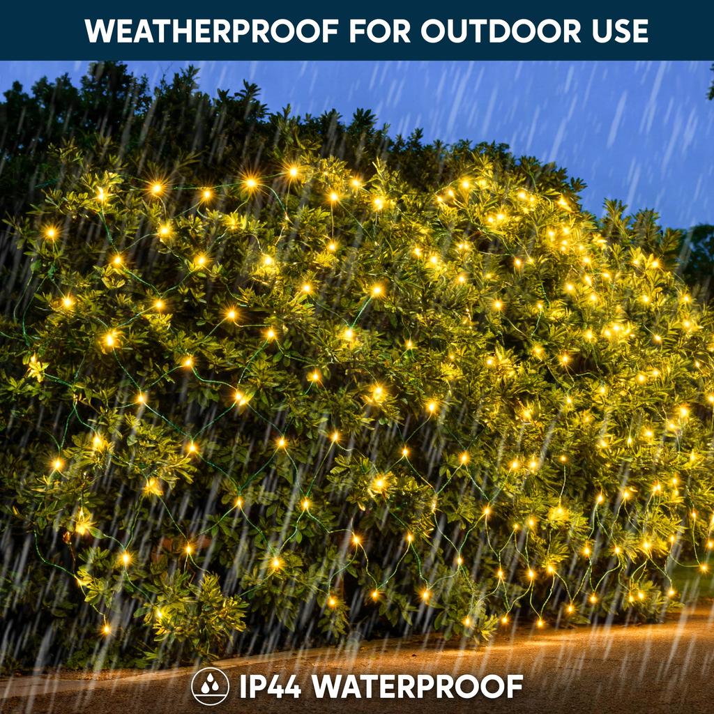 JOYFY 2 упаковки по 100/150 рождественских сетчатых огней для кустов, теплый белый, уличные сетчатые огни для рождественской елки