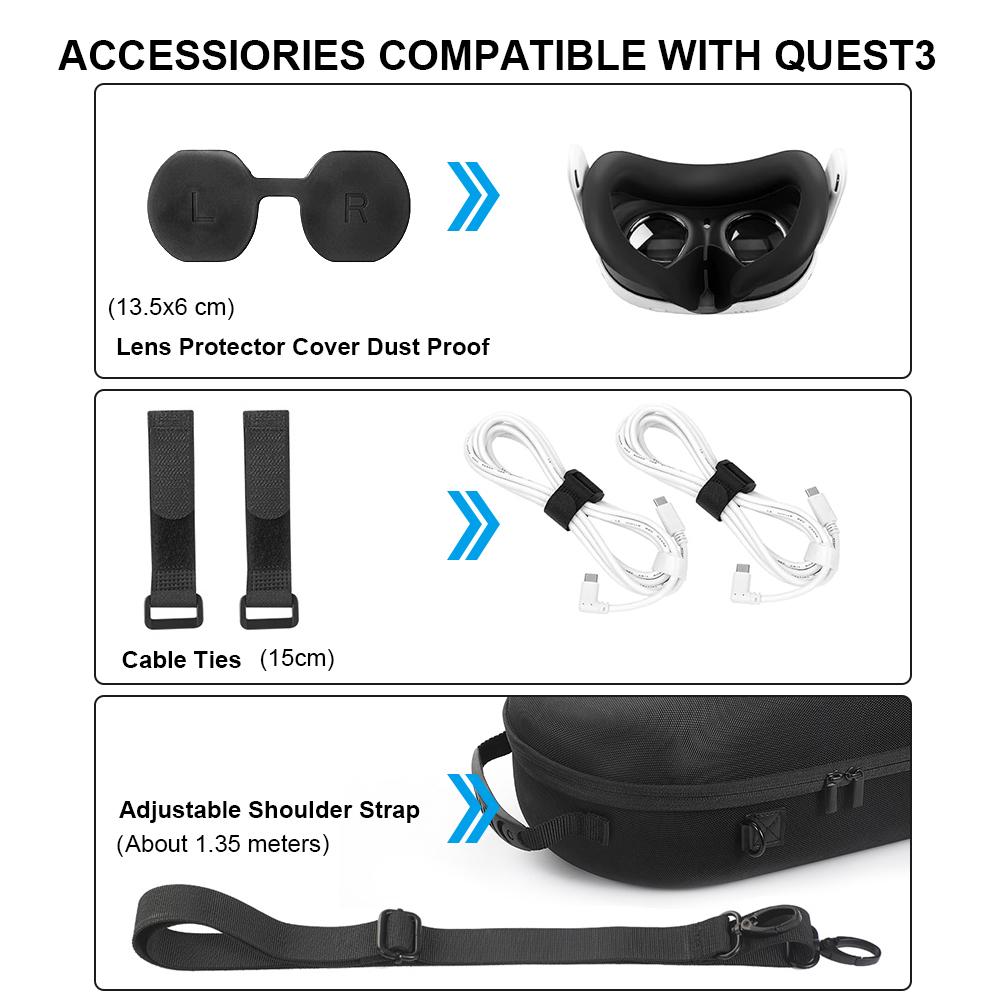Жесткий чехол Len Cover, противоударная портативная сумка для хранения, кабельные стяжки с плечевым ремнем для контроллера гарнитуры Meta Quest 3 VR