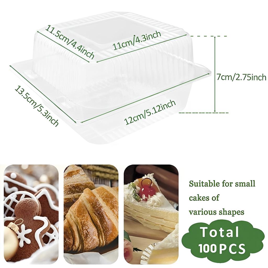 100 шт. Пластиковые десертные стаканчики с крышками, многоразовые контейнеры для кексов, прозрачные квадратные, одинарные десертные коробки, герметичные коробки для хранения тортов