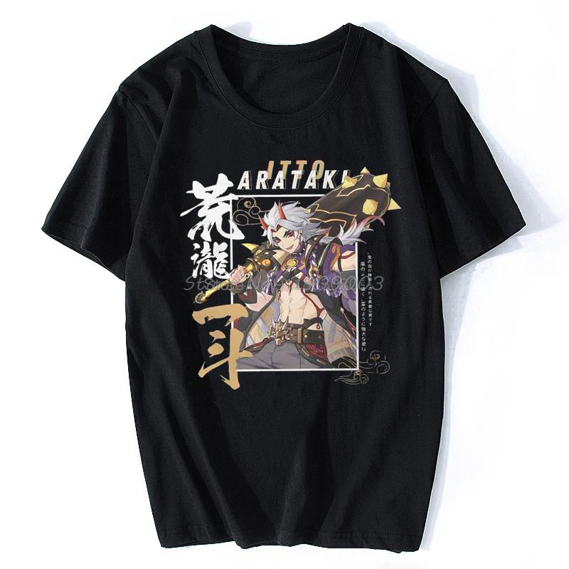 Игровая футболка для мужчин Genshin Impact Крутая футболка с Аратаки Итто Отличительная футболка Хлопковая футболка Футболки Оверсайз Харадзюку Уличная одежда
