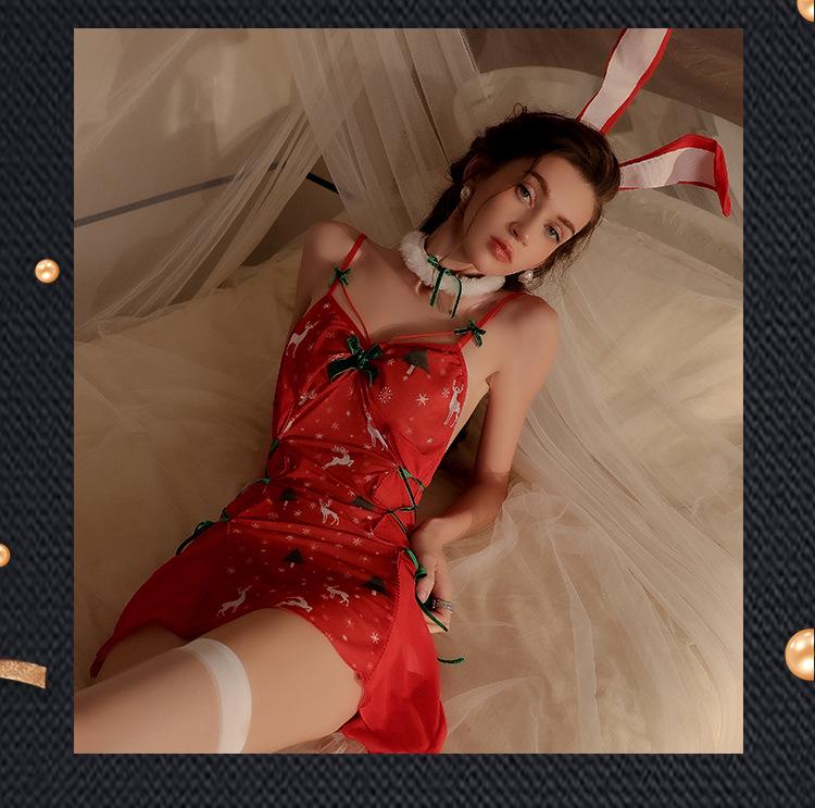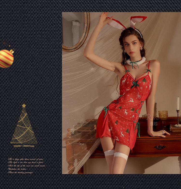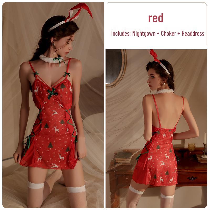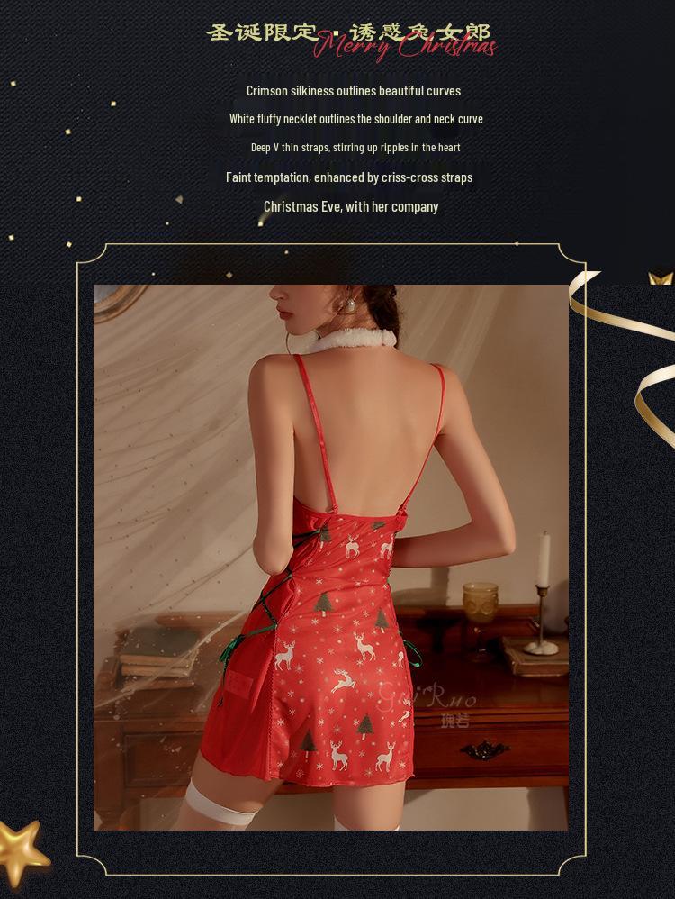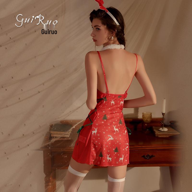 Сексуальный сетчатый комплект рождественского нижнего белья большого размера с принтом - ночная сорочка с открытой спиной
