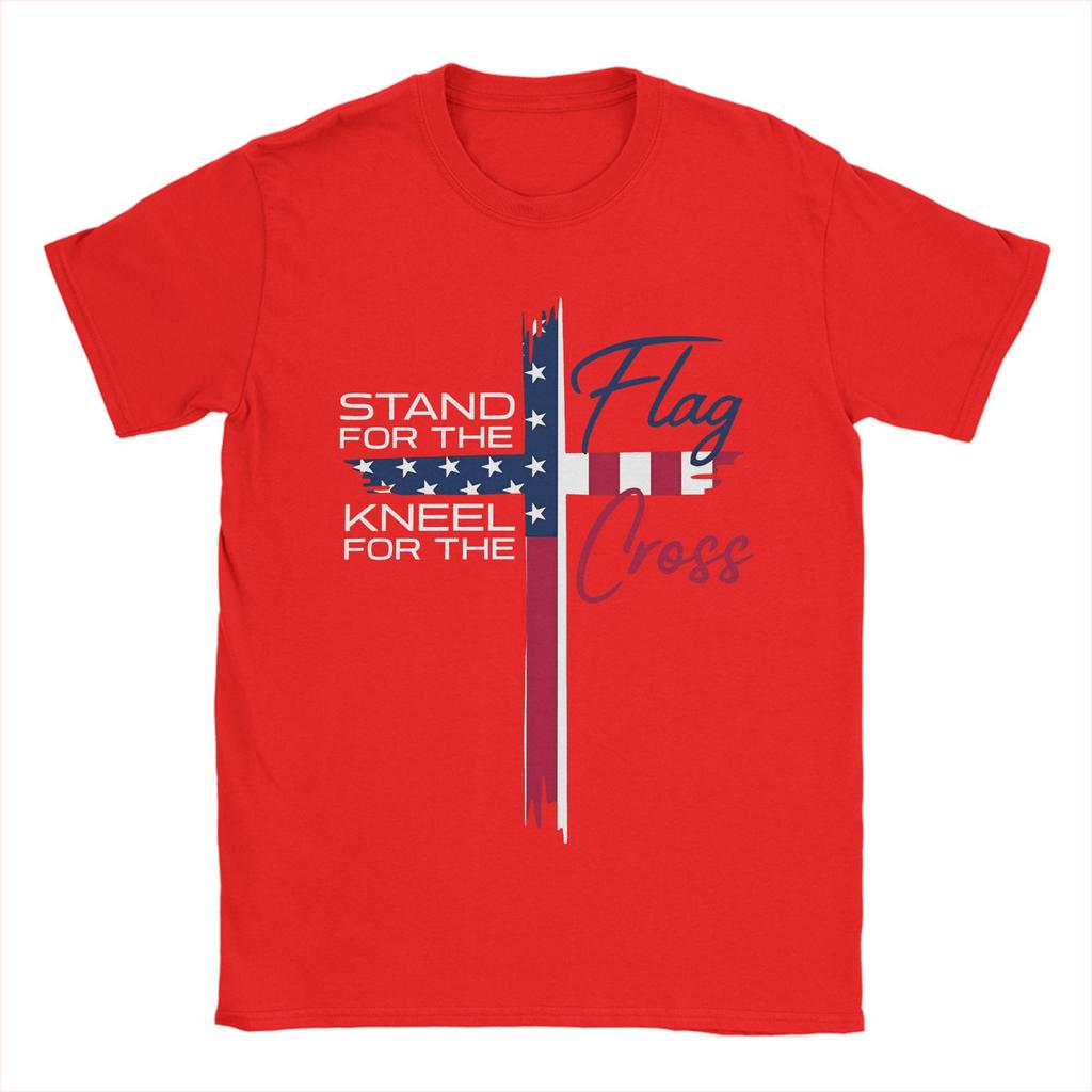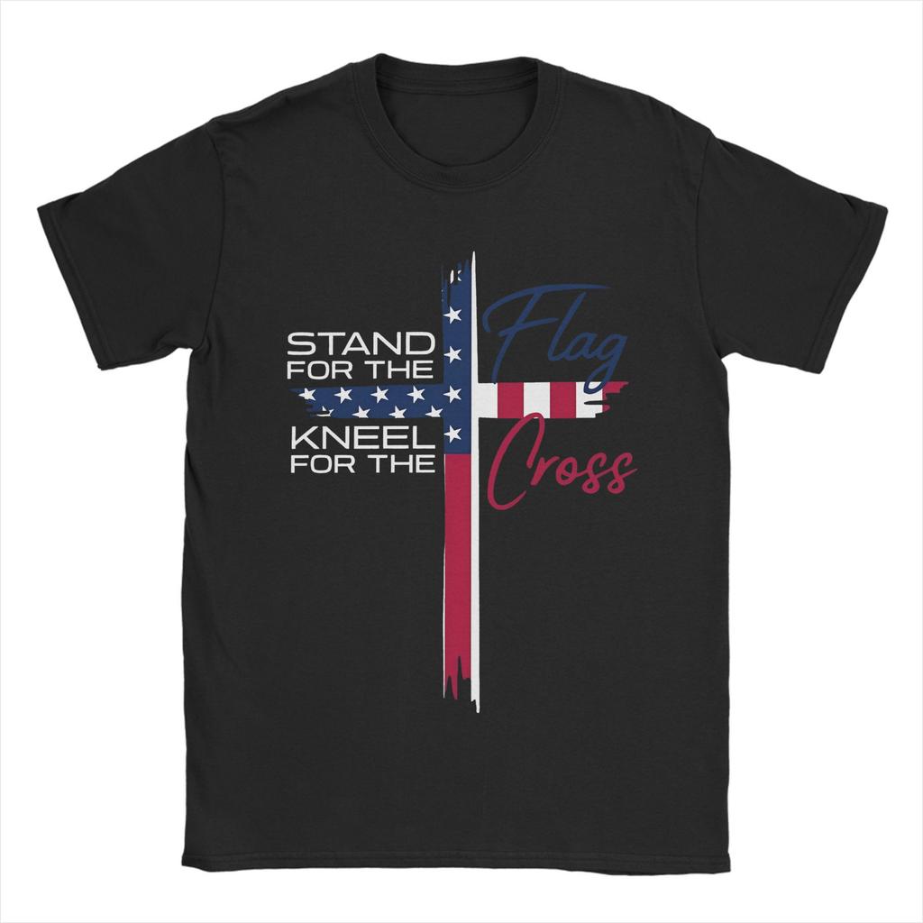 Men T-Shirt Stand For The Flag I Kneel For The Cross Awesome Pure Cotton Tee Shirt Short Sleeve T Shirts Round Neck Tops Summer