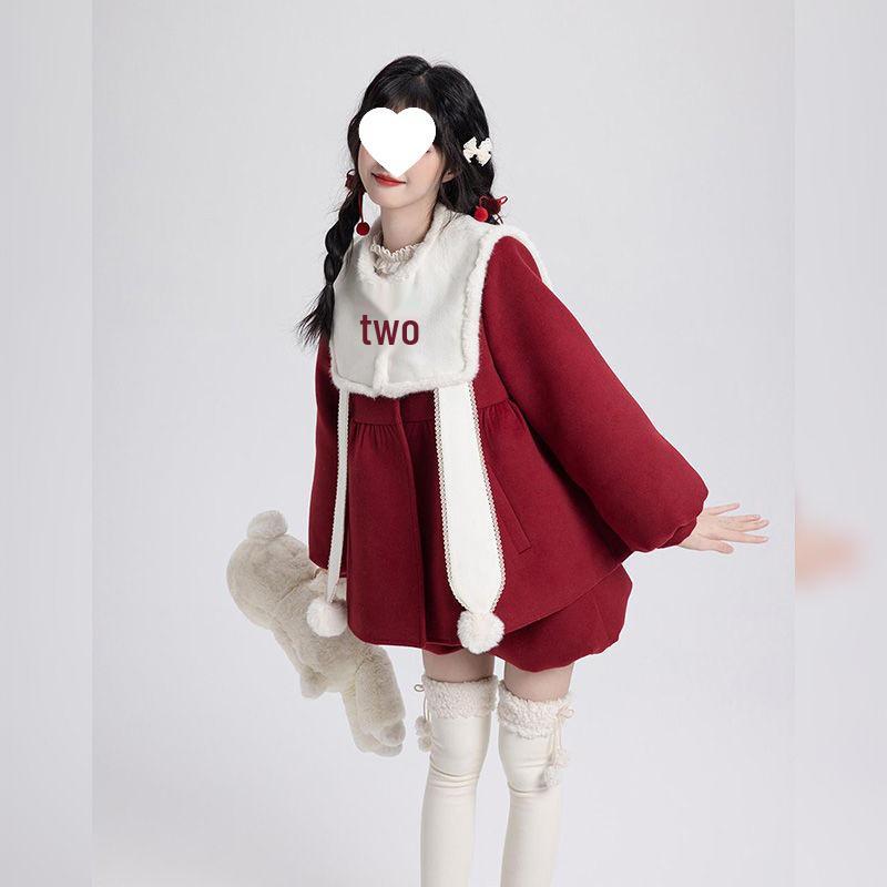 Женское зимнее пальто на красных пуговицах-лягушках и брюки-тюльпаны, рождественский комплект 2024