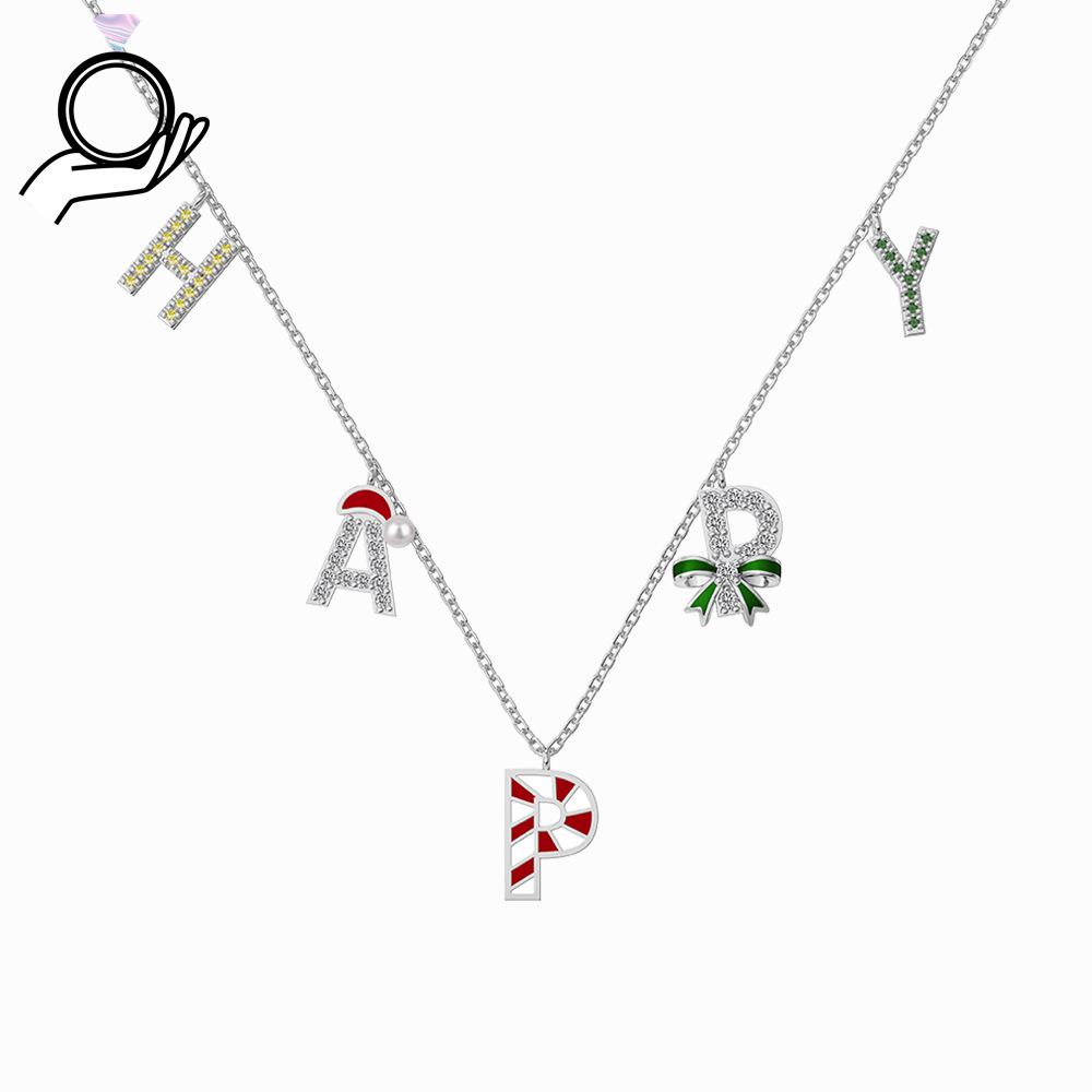 Colorful Epoxy Candy Cane S925 Sterling Silver Necklace for Women