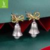 Yinziyun Christmas Snowflake Bell Earrings: S925 Sterling Silver Bow Studs