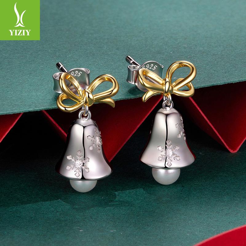 Yinziyun Christmas Snowflake Bell Earrings: S925 Sterling Silver Bow Studs — купить товар онлайн с бесплатной доставкой по всему миру!