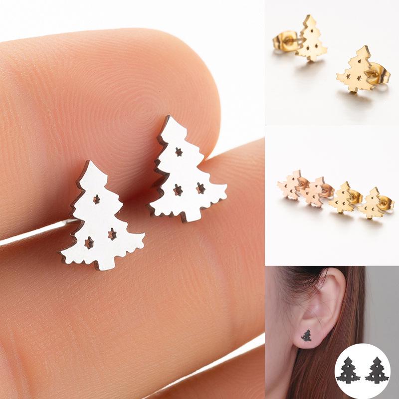 Простые серьги-гвоздики в виде рождественской елки из нержавеющей стали