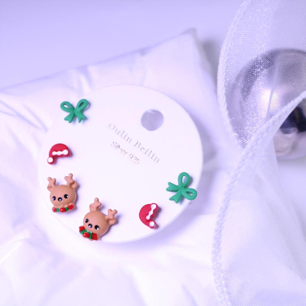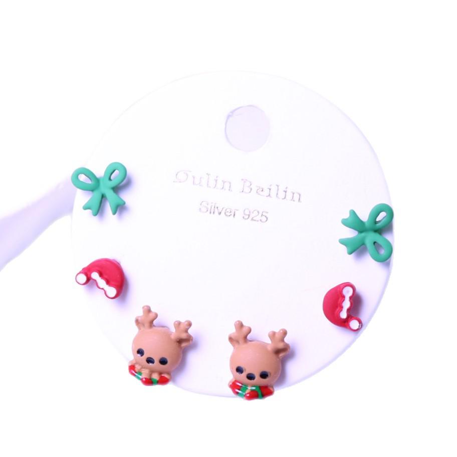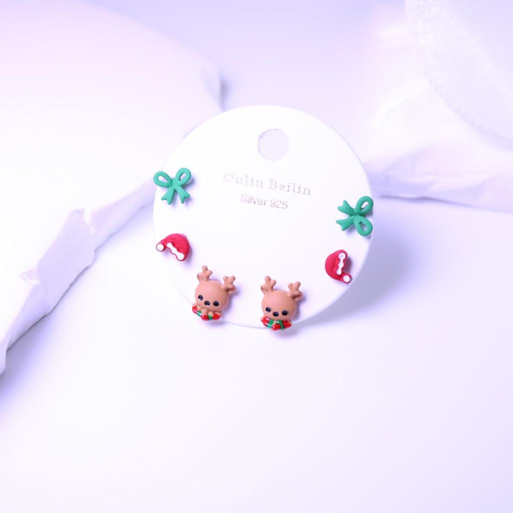 МодельМультяшные серьги-пусеты в виде оленей, комбинация