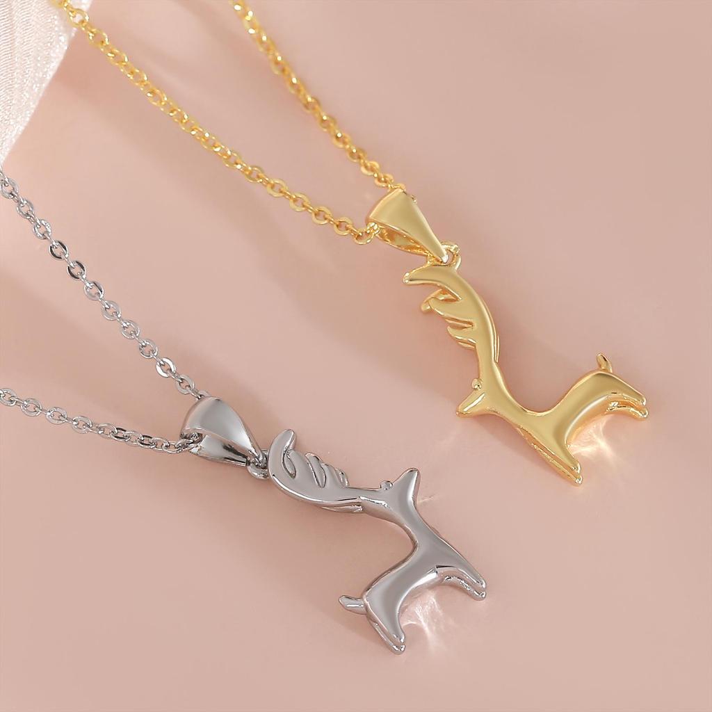 Korean-Style Gold-Plated Elk Pendant Clavicle Necklace - Sweet Christmas Gift