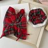 Клетчатый рождественский шарф-скранчи с кружевной отделкой - Красная женская резинка для волос
