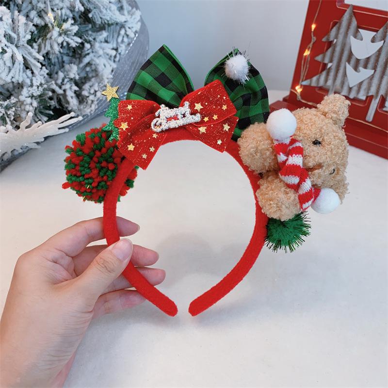 Рождественский красный ободок с рогами и мультяшным медведем и кроличьими ушками для женщин и детей