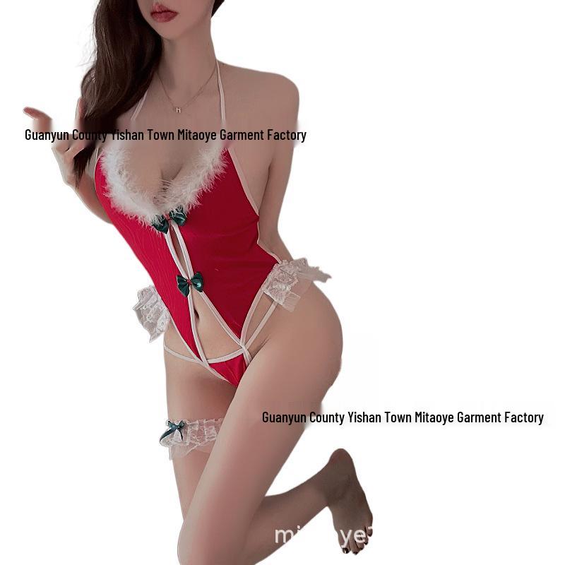European & American Christmas Sexy Open-Crotch Halter Bodysuit - Tempting Backless Lingerie Sleepwear