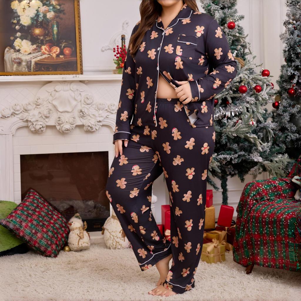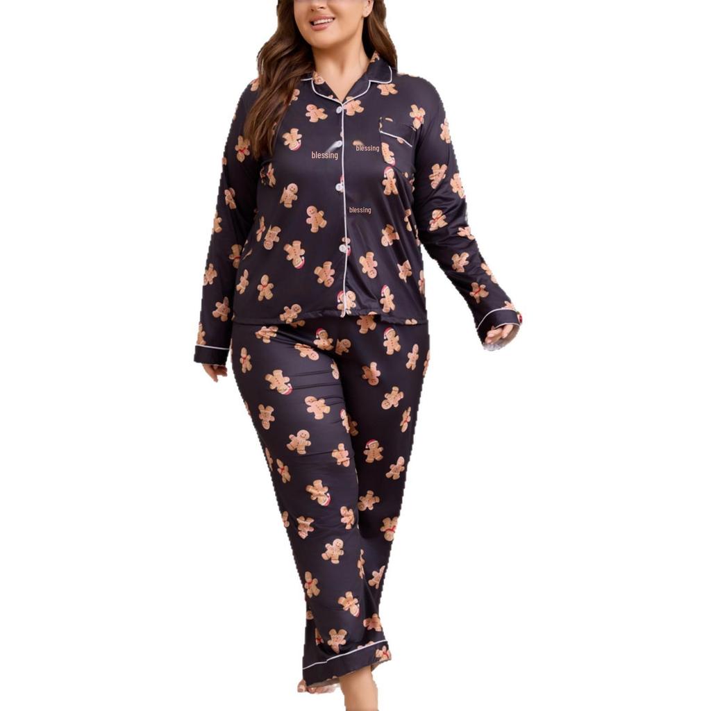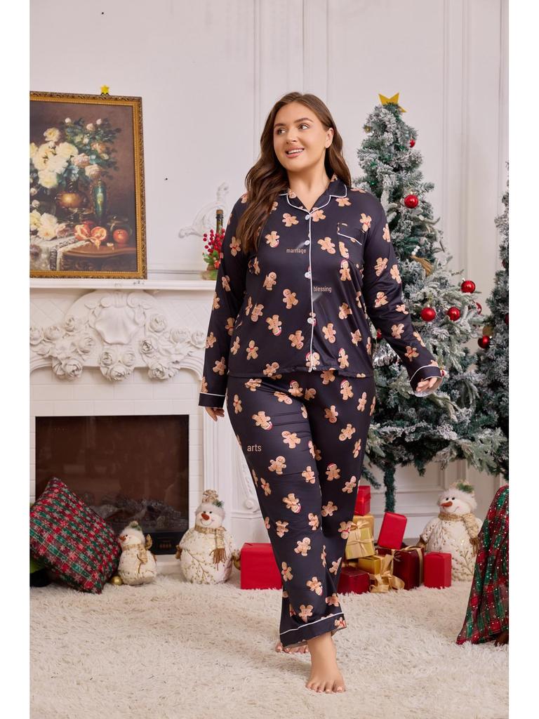 Побалуйте себя уютной изысканностью с этим женским пижамным комплектом большого размера, идеальным для Рождественской осенне-зимней коллекции.. Этот роскошный комплект включает кардиган с лацканами в сочетании с длинными брюками, изготовленный из мягкого искусственного шелка, что обеспечивает комфорт и элегантность.. Ткань содержит молочный шелк для дополнительной гладкости и тепла, что делает ее идеальной для прохладных ночей.. Этот комплект с длинными рукавами сочетает в себе стиль и функциональность, и он идеально подходит для отдыха дома в праздничный сезон.