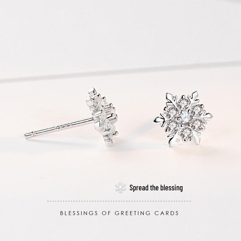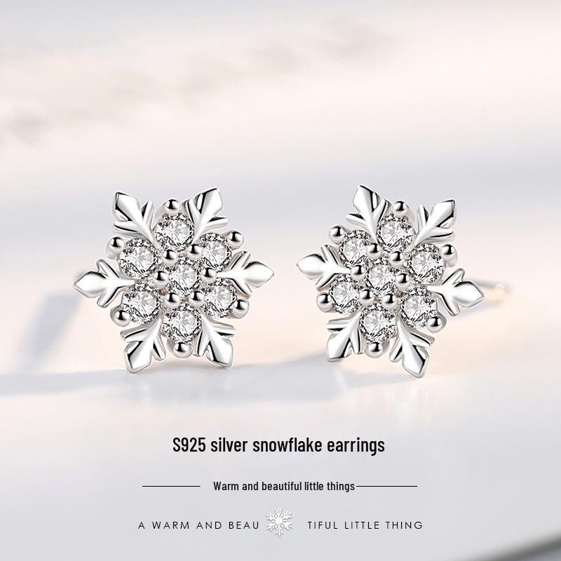 Серьги-пусеты из стерлингового серебра 925 пробы 'Снежинки' для женщин - в корейском стиле, модные, универсальные, простые, рождественский подарок.
