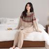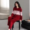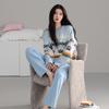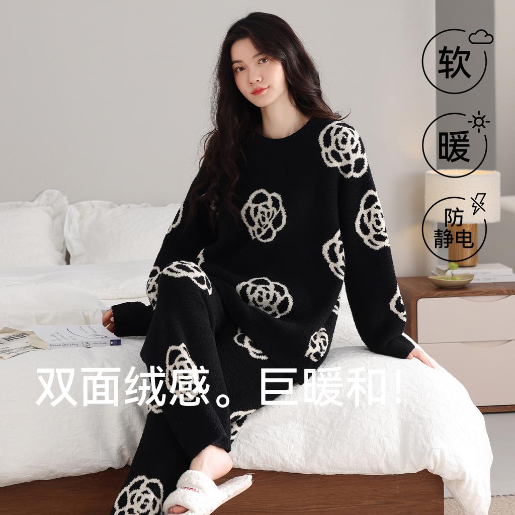 Пижама из полуфлиса женская осенне-зимняя утолщенная с длинным рукавом термо-повседневный пуловер можно носить на улице домашняя одежда коралловый флис костюм