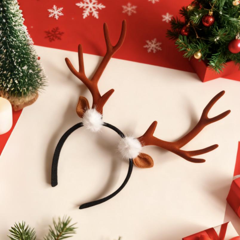 Рождественский ободок с оленьими рогами - Коричневый и красный, Взрослый размер