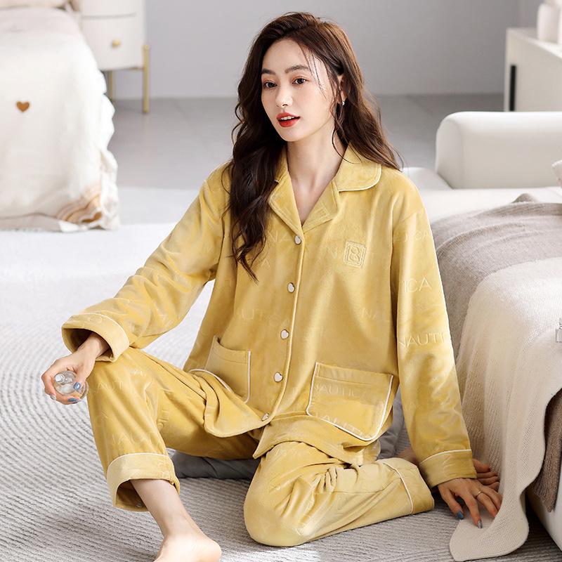 Пижама женская коралловый флис осень и зима теплая с длинным рукавом костюм фланелевый утолщенный флис домашняя одежда