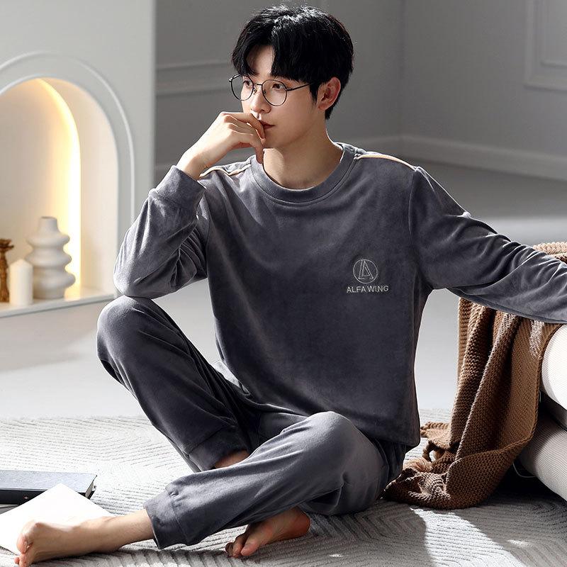 Пижама мужская осенне-зимняя из флиса «остров», флисовая, весенне-осенняя из кораллового флиса, тонкий флис, комплект домашней одежды
