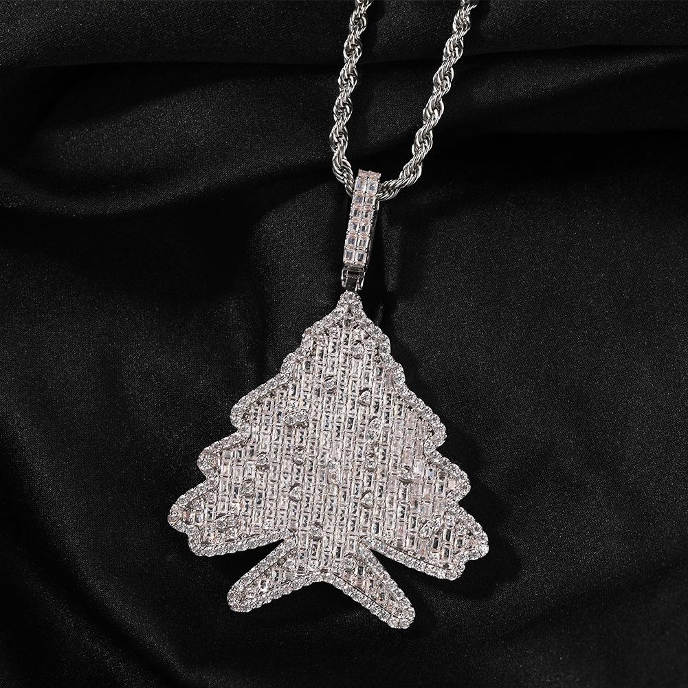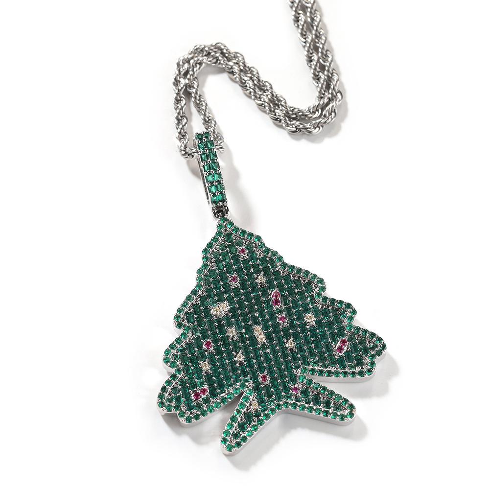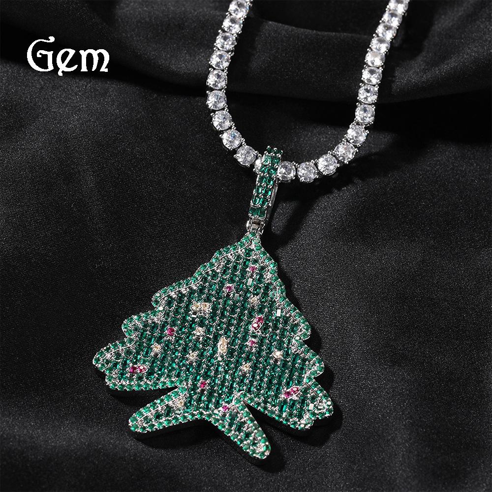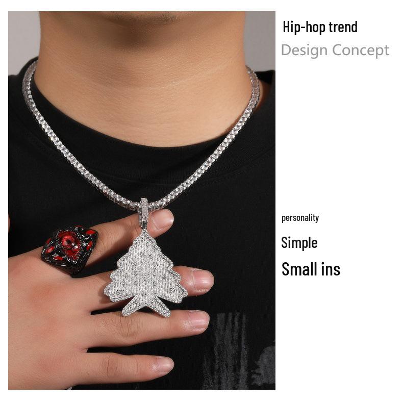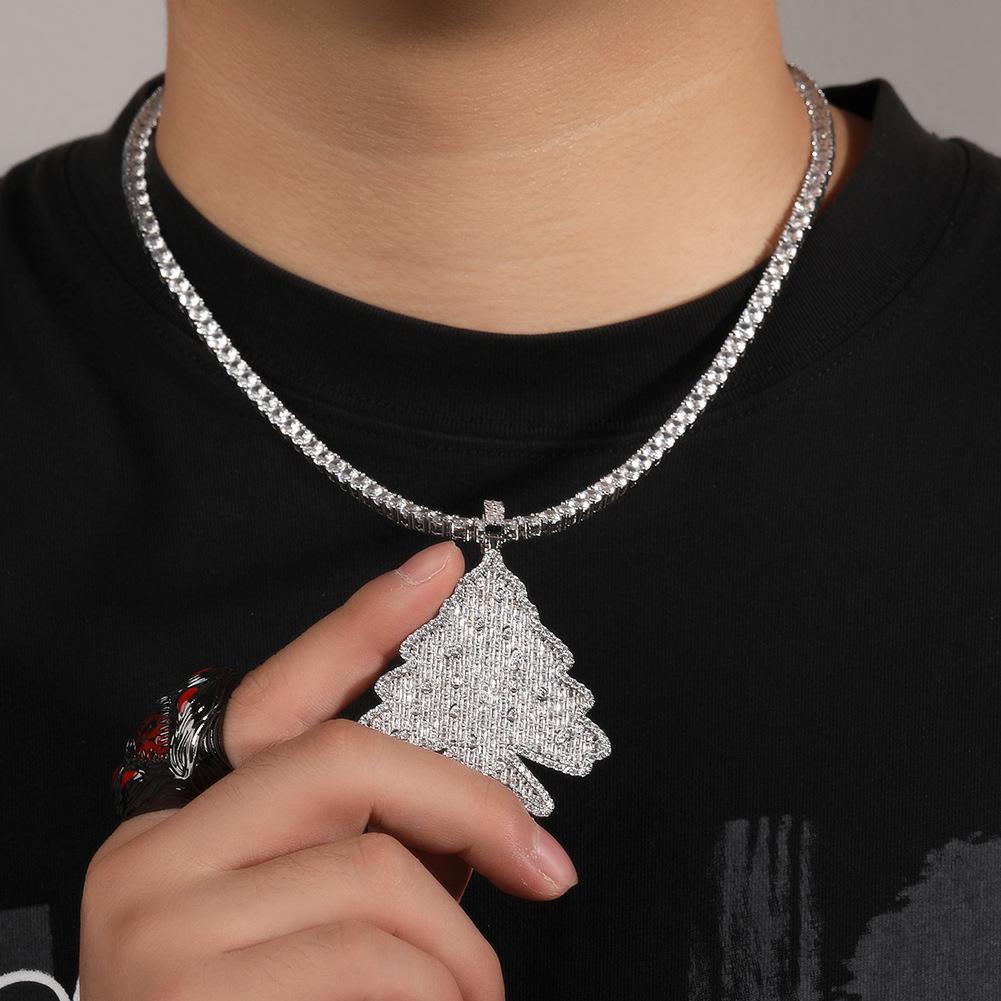 Men's Zircon Christmas Tree Hip-Hop Pendant Necklace - European & American Trendy High-End Jewelry