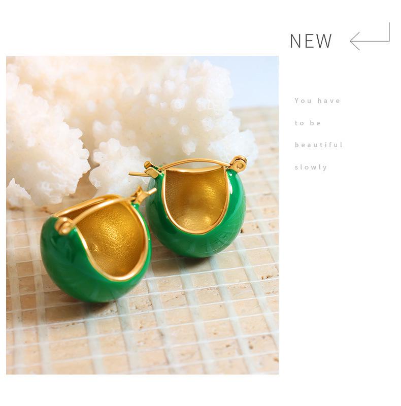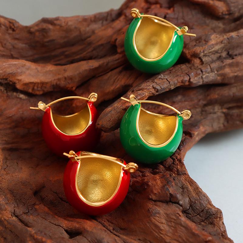Французский ретро темперамент роскошные рождественские красные и зеленые серьги-пусеты, женские украшения из титановой стали.