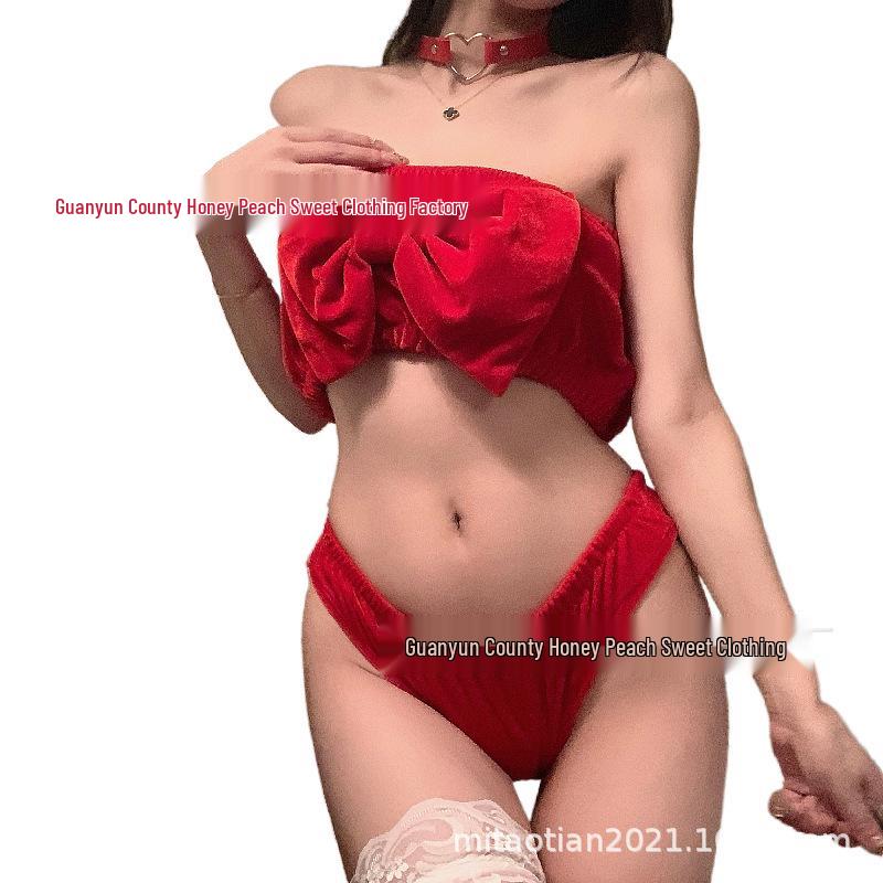 Christmas Red Lingerie Set - Sexy Bow Bandeau & Panties