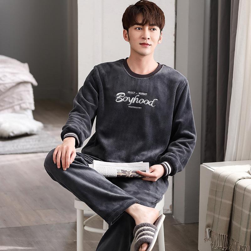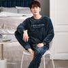 Фланелевая пижама мужская осенне-зимняя пуловер для тепла зимний флис утолщенный коралловый флис мужской комплект для дома