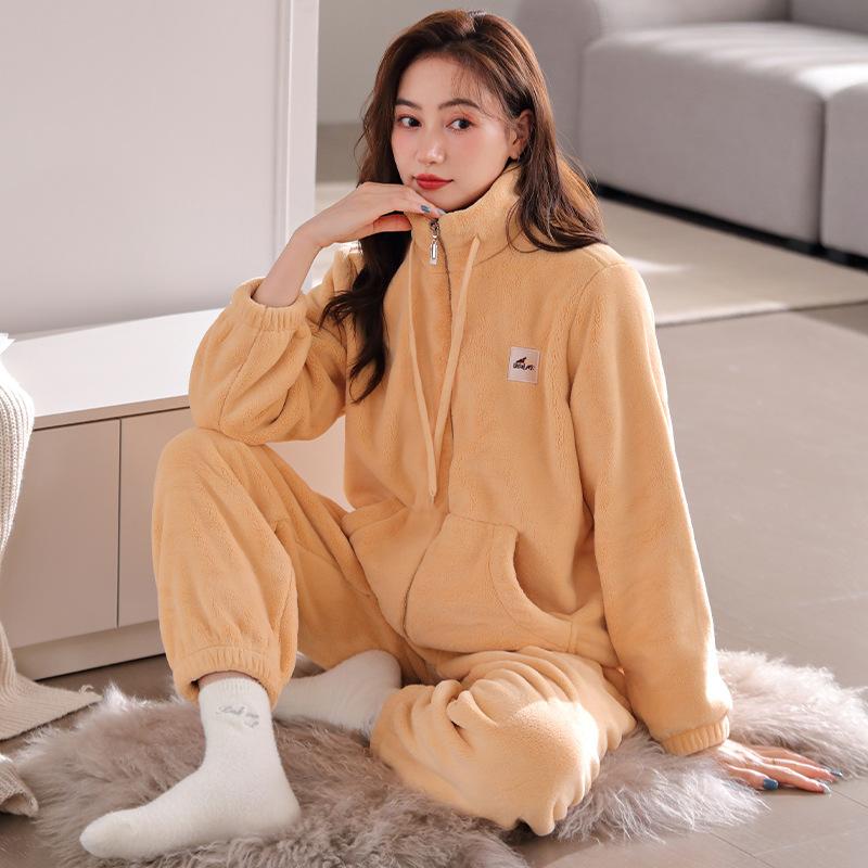 Пижама женская зимняя коралловый флис утолщенный флис теплая женская осенне-зимняя фланелевая можно носить на улице зимняя домашняя одежда