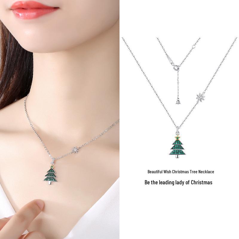 Min Yue Original S925 Silver Necklace with Zircon Christmas Tree Pendant for Women - European & American Style Clavicle Chain