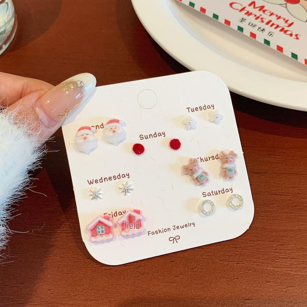 Серьги-пусеты «Снеговик Санта с бантом Игла» - Праздничный мультяшный дизайн для женщин