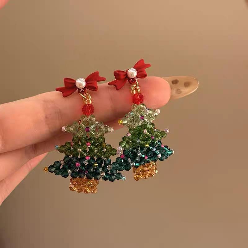 Праздничные красные бантики и серебряные иглы рождественские серьги-кольца в форме сердца для женщин