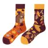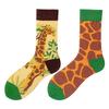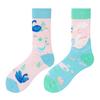 SMLSOX Летние асимметричные носки до середины икры с утками-мандаринками для пары, красочные рождественские хлопковые модные носки