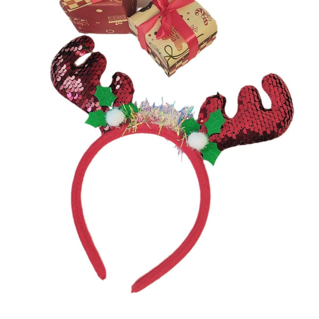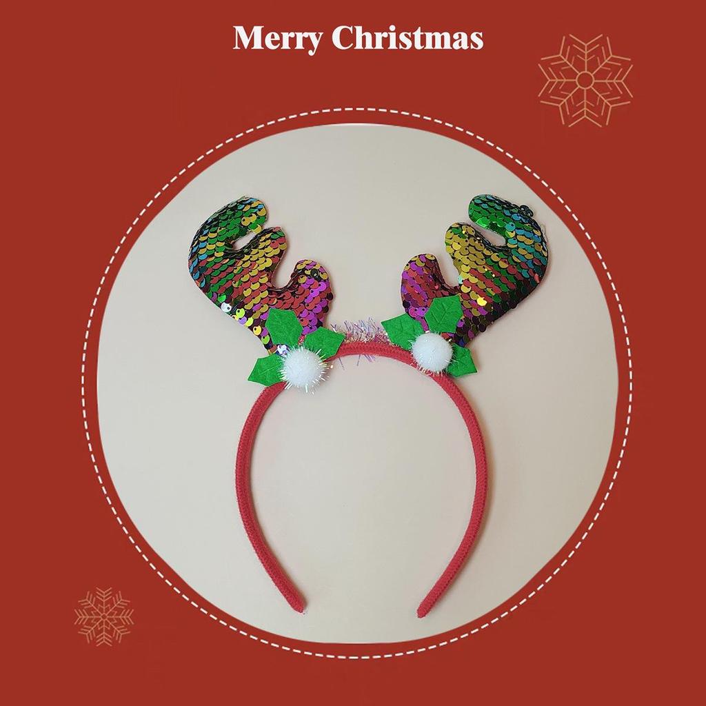 Handmade High-End Christmas Reindeer Antler Sequin Headband and Santa Hat - Cute Festive Hair Accessories