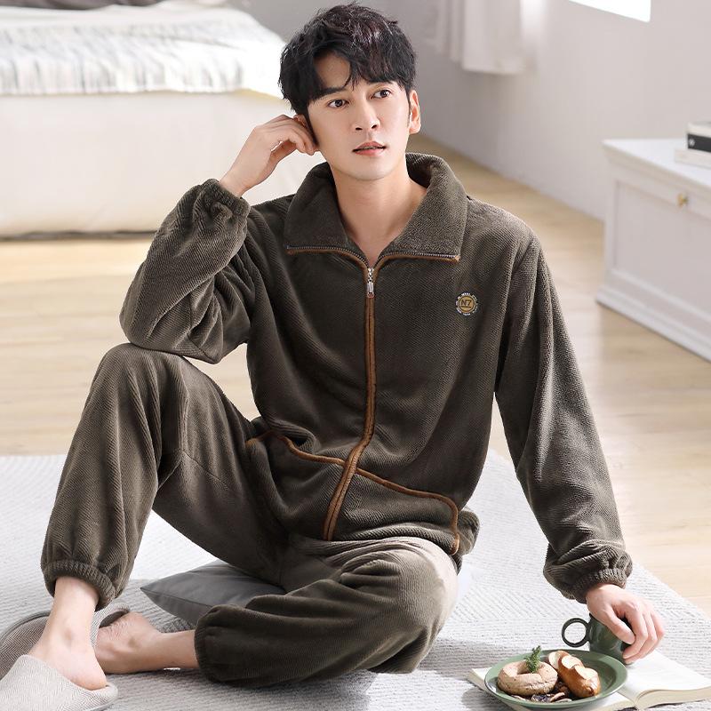Пижама мужская зимняя коралловый флис утолщенный флис теплая мужская осенне-зимняя фланель мужская большого размера зимняя домашняя одежда
