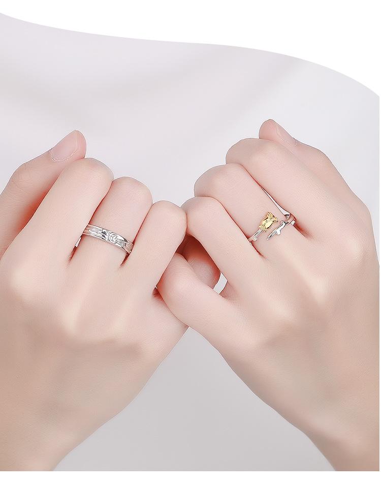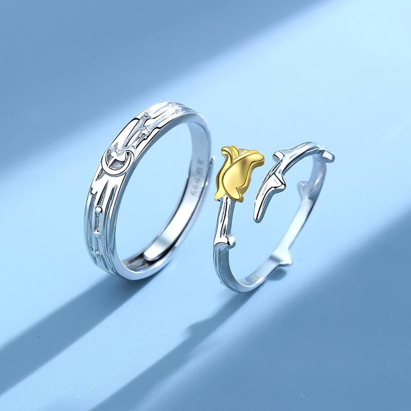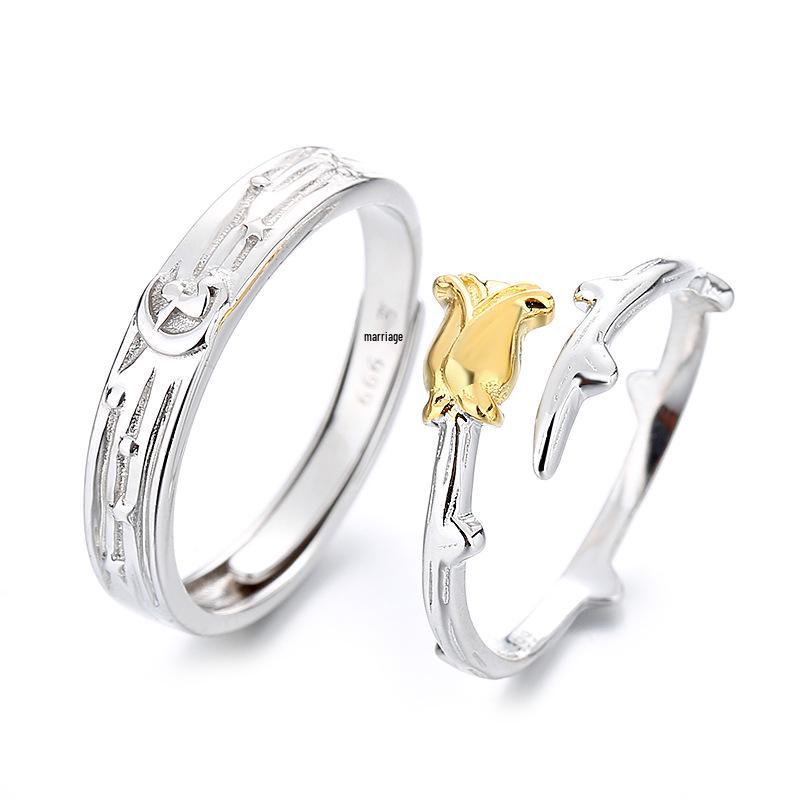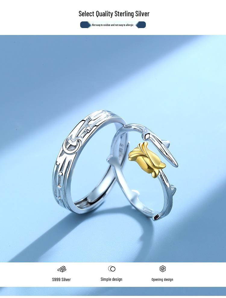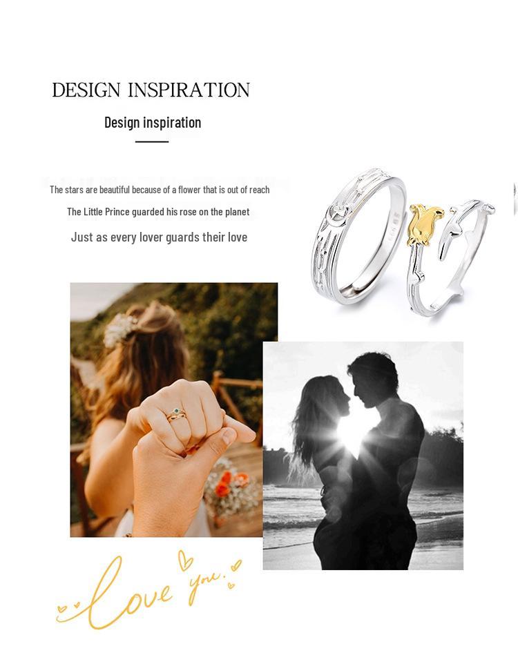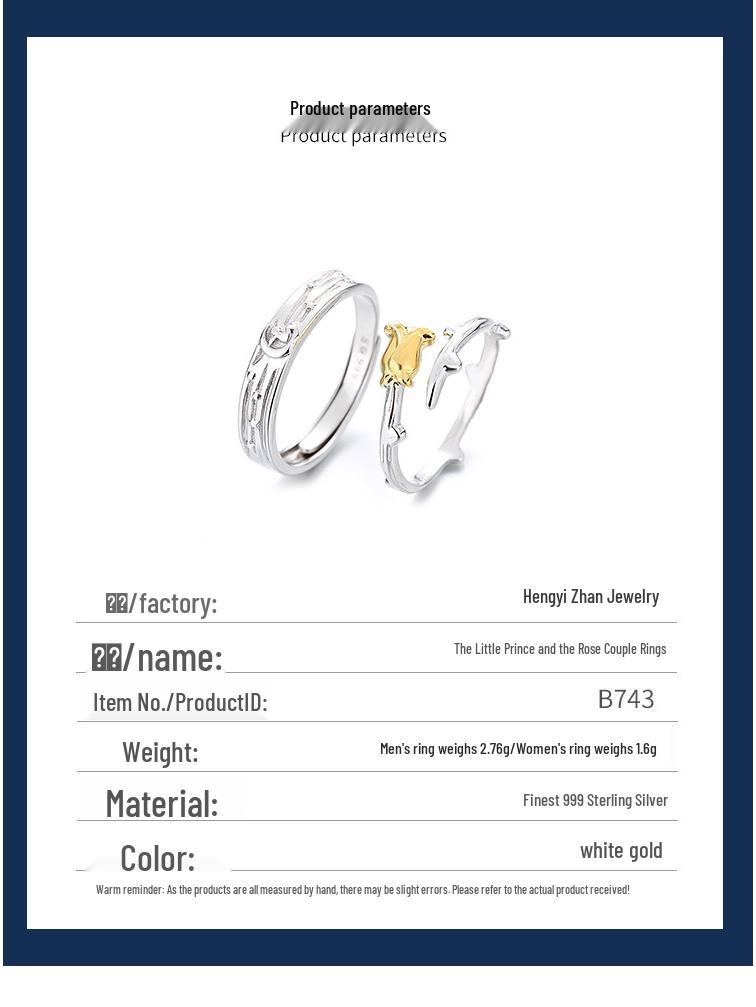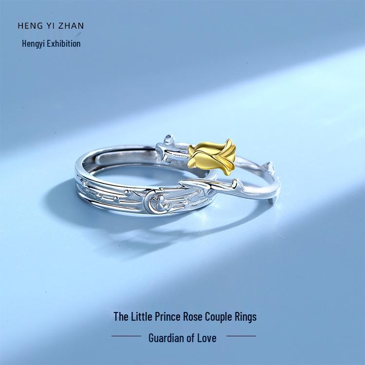 Маленький принц и роза Регулируемые парные кольца из стерлингового серебра 999 пробы, Подарок для мужчин и женщин
