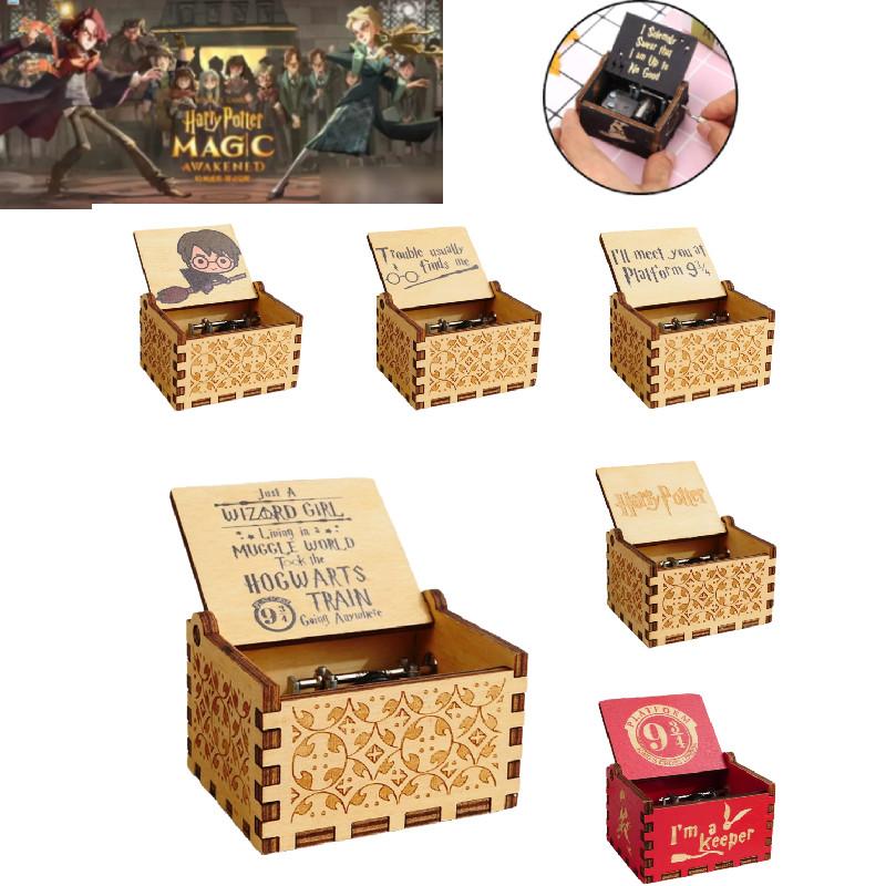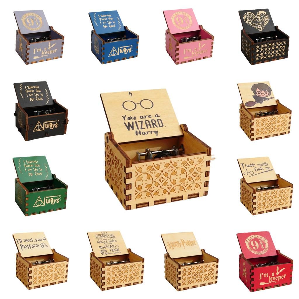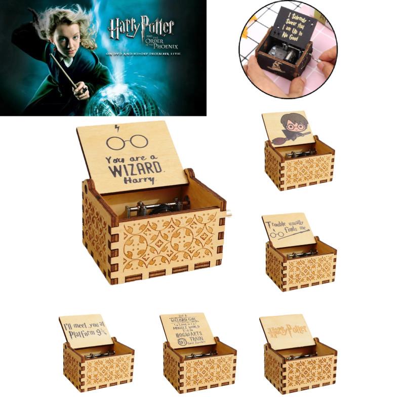 Деревянная музыкальная шкатулка Поттер Ретро с ручным заводом Гравированная игрушка-украшение Рождественский подарок