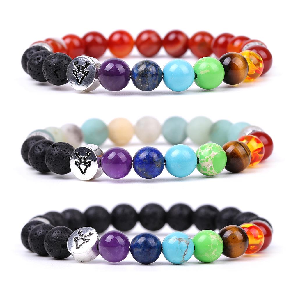 European & American Reindeer Bracelet with Striped Agate, Tiger's Eye, and Frosted Amazonite — купить товар онлайн с бесплатной доставкой по всему миру!