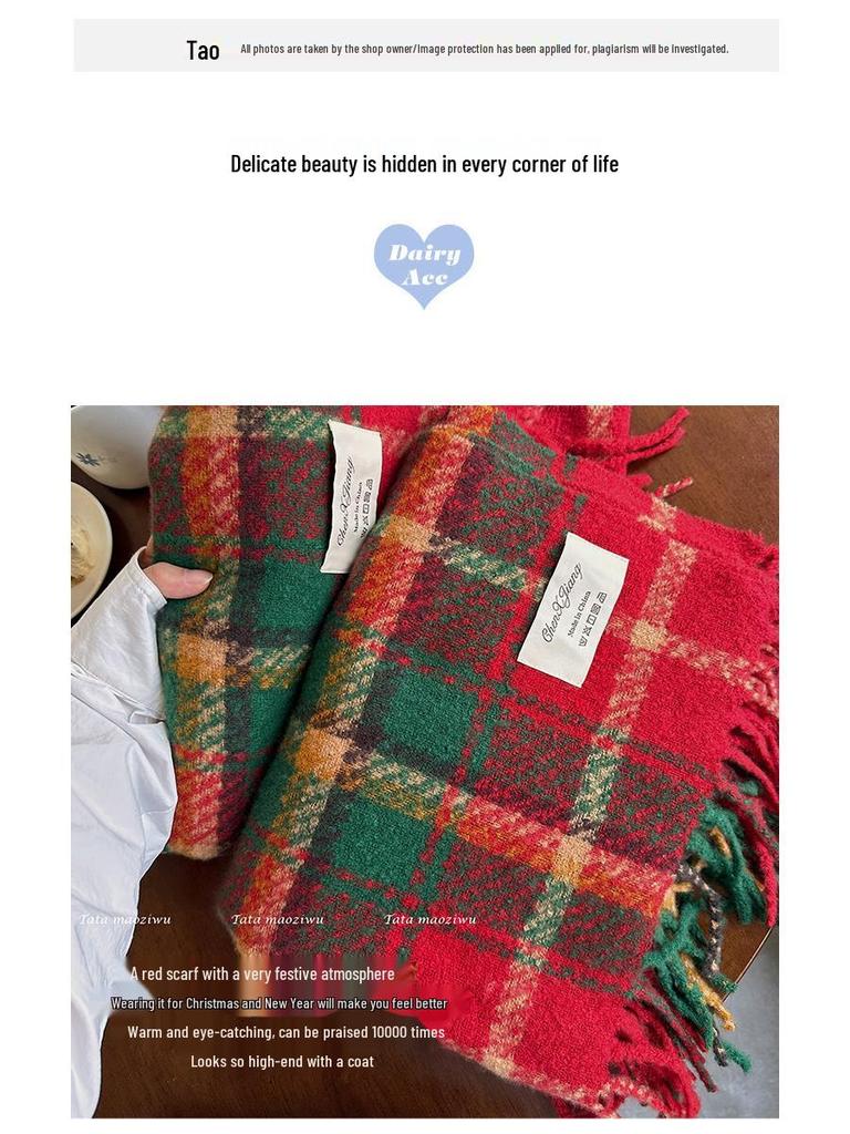 Red Tassel Plaid Scarf: Warm & Versatile Winter Shawl for Women