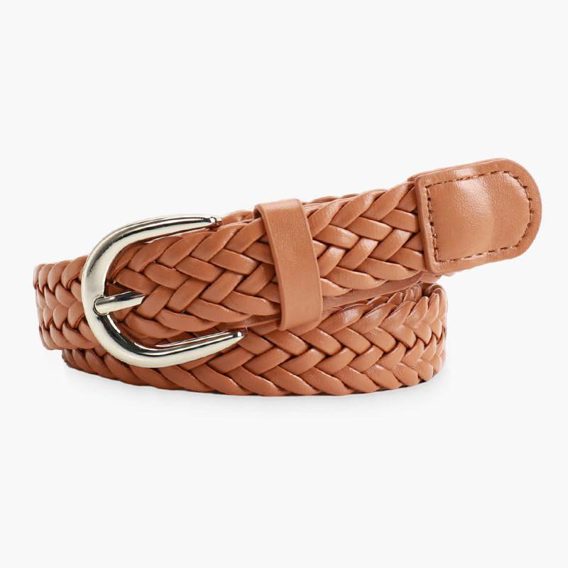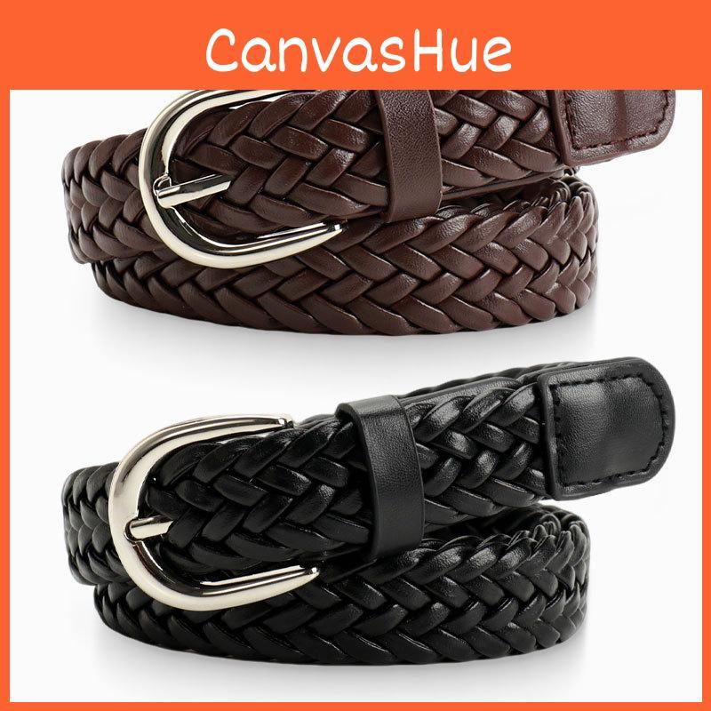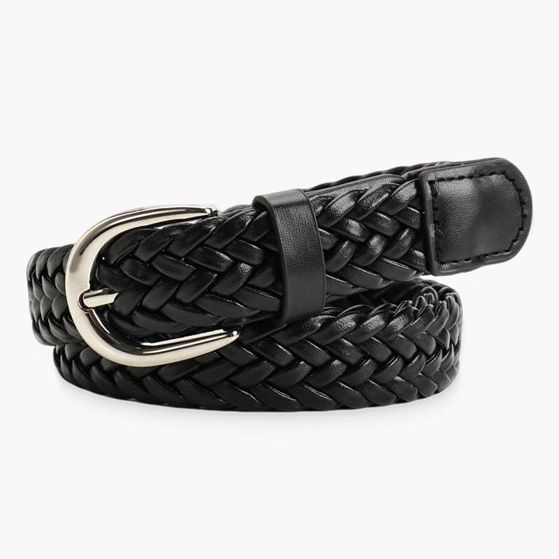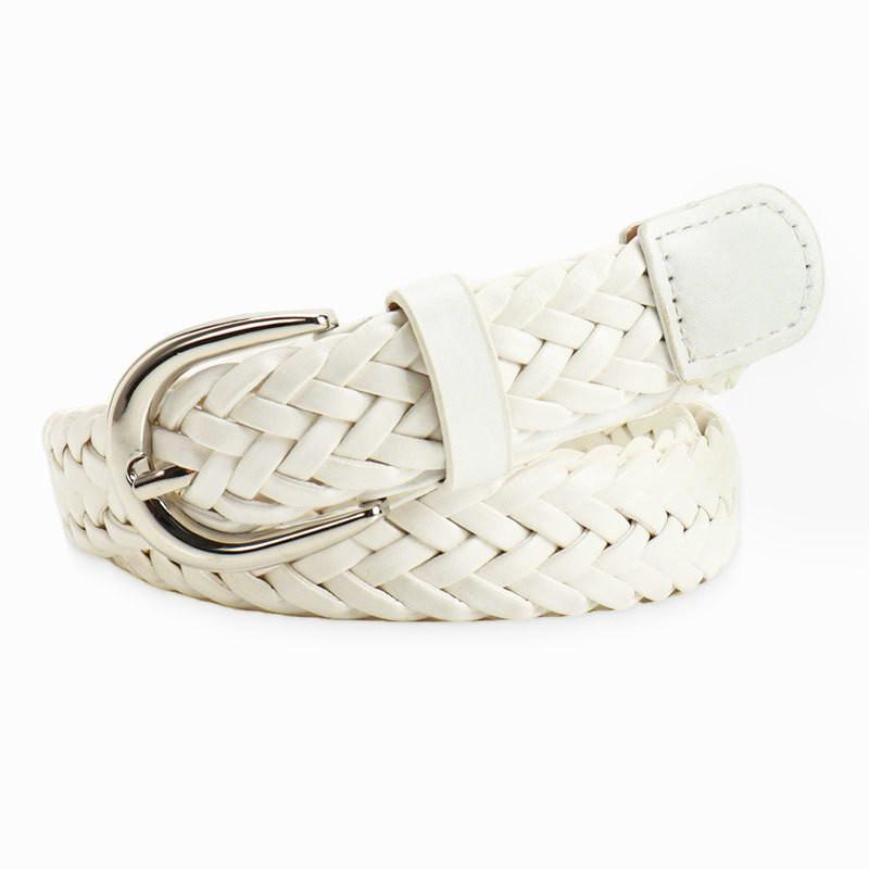 Цвет Простая Однотонная Металлическая Пряжка Без Проколов Кожаный Плетеный Женский Ремень